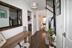 The heart of the home is the kitchen/dining area, flooded with natural light and opening to the garden via French doors. It includes a 4-ring gas hob, double oven, integrated washer, fridge, freezer and dishwasher, with LVT flooring and fitted blinds. There is also a handy downstairs WC. The separate lounge enjoys a window to the front aspect, fitted blinds and attractive wall panelling.