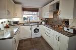 The well-appointed kitchen enjoys pleasant views over the garden and features a range of base-to-ceiling units, tiled splashbacks, a four-ring gas hob with chrome extractor hood, double oven, integrated dishwasher, stainless steel sink, and space for a washing machine. A useful side door provides direct access to the driveway. To the rear, a conservatory offers additional flexible living space ideal as a dining area, playroom or second sitting room with doors opening onto the garden.