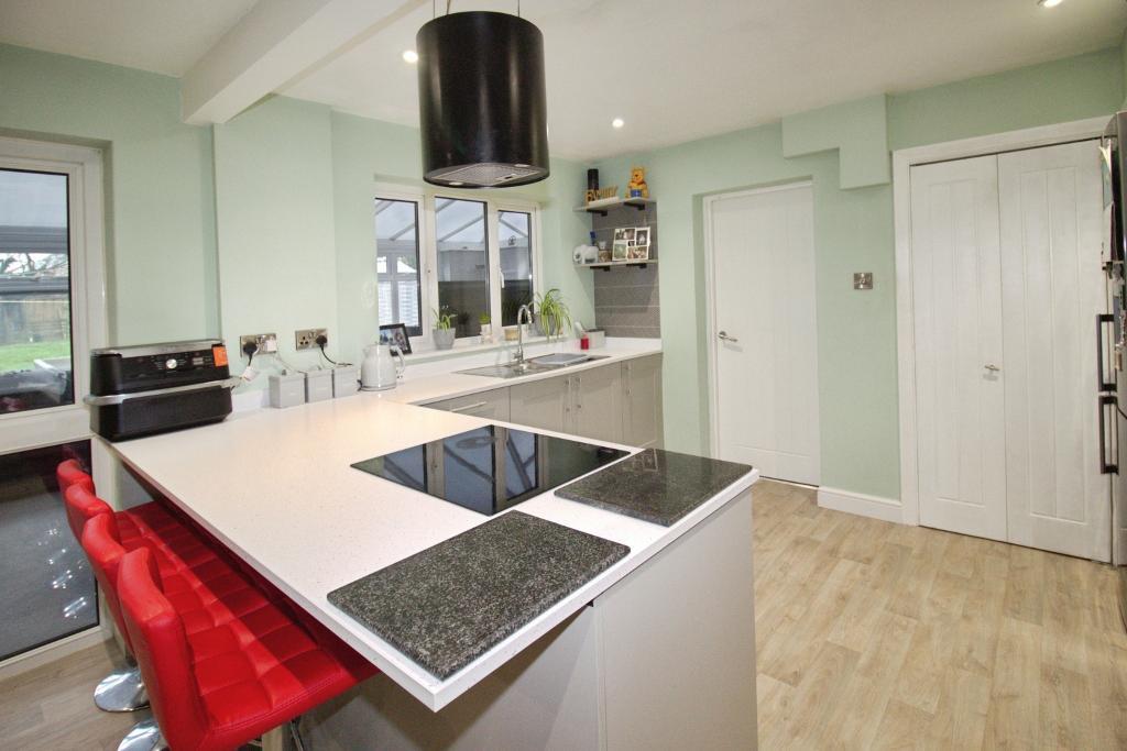 The stunning open-plan kitchen fitted less than three years ago delivers on both aesthetics and practicality, featuring sleek island units, floor-to-ceiling storage, integrated pantries, an induction hob, oven, and built-in dishwasher. There's ample space for family dining and a dedicated breakfast area that bathes in natural light, with a pleasant flow into the adjoining day room. Everyday living is made easy thanks to a useful utility room and a convenient downstairs WC. The property is supported by a modern combination boiler and, with a substantially sized rear garden, holds future potential for extension (subject to planning).