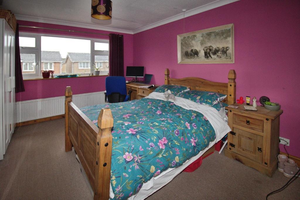 Upstairs, the master bedroom looks over the tranquil front aspect, alongside a similarly generous second double bedroom with garden views and in-built airing cupboard. The third bedroom is well-suited for children or use as an office, offering plentiful storage including built-in wardrobe and stylish fitted blinds.
