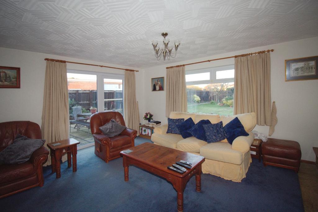 Upon entering the bungalow you are welcomed through into a spacious lounge with large windows offering garden views and a charming fireplace as a focal point. The reception room also provides direct access to the private garden, ideal for enjoying outdoor activities and entertaining guests.
