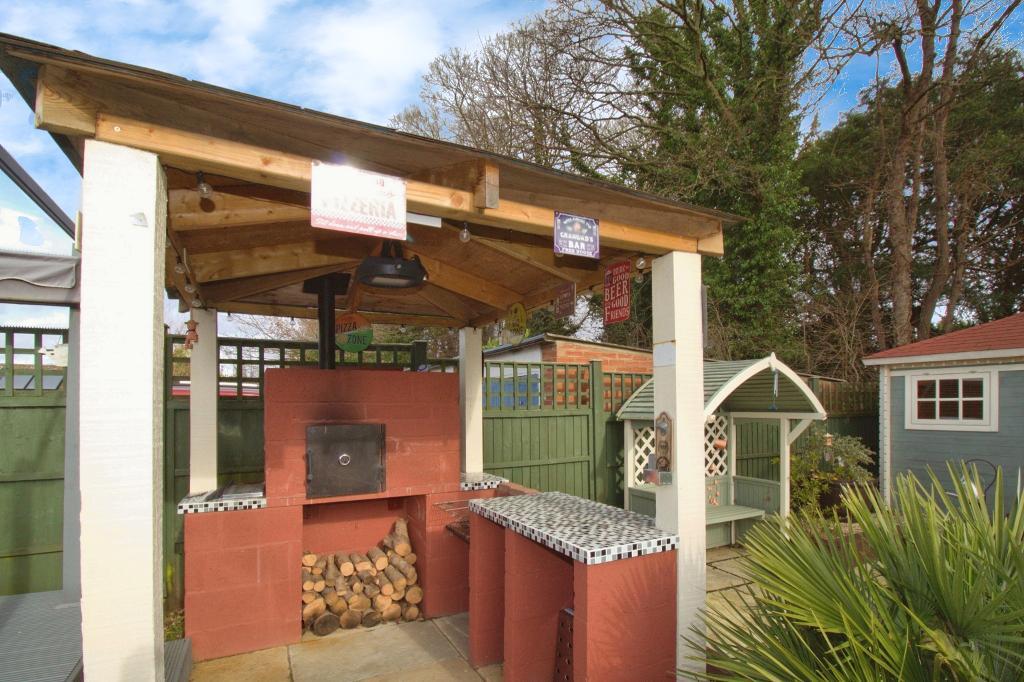 Outside, the property offers a garage with an electric door, parking spaces, a lovely garden with a summer house, and a unique pizza oven. The EPC rating is D, and the council tax band is C.