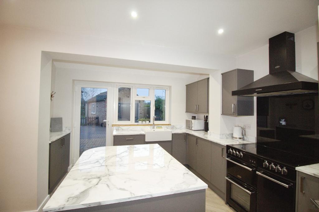 This property offers a single reception room that has been recently refurbished and furnished with a media wall and herringbone flooring. The open-plan kitchen is another highlight, featuring a kitchen island, modern appliances, and dining space. It has been recently refurbished and offers access to the rear garden and integrated fridge and freezer.