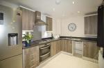 The flat boasts a modern kitchen, equipped with a 4 ring gas hob and an integrated washer dryer.