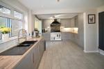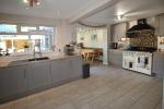 At the heart of the home, the kitchen is flooded with natural light, complemented by the Smeg cooker which has a 7 burner ring , 2 ovens plus grill plus storage draw. The kitchen also has tiled flooring and splashbacks, bi-fold doors, dining space for family meals, and a large utility room for added convenience.