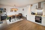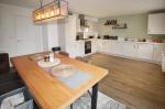The heart of the home is the kitchen/dining area, flooded with natural light and opening to the garden via French doors. It includes a 4-ring gas hob, double oven, integrated washer, fridge, freezer and dishwasher, with LVT flooring and fitted blinds. There is also a handy downstairs WC. The separate lounge enjoys a window to the front aspect, fitted blinds and attractive wall panelling.