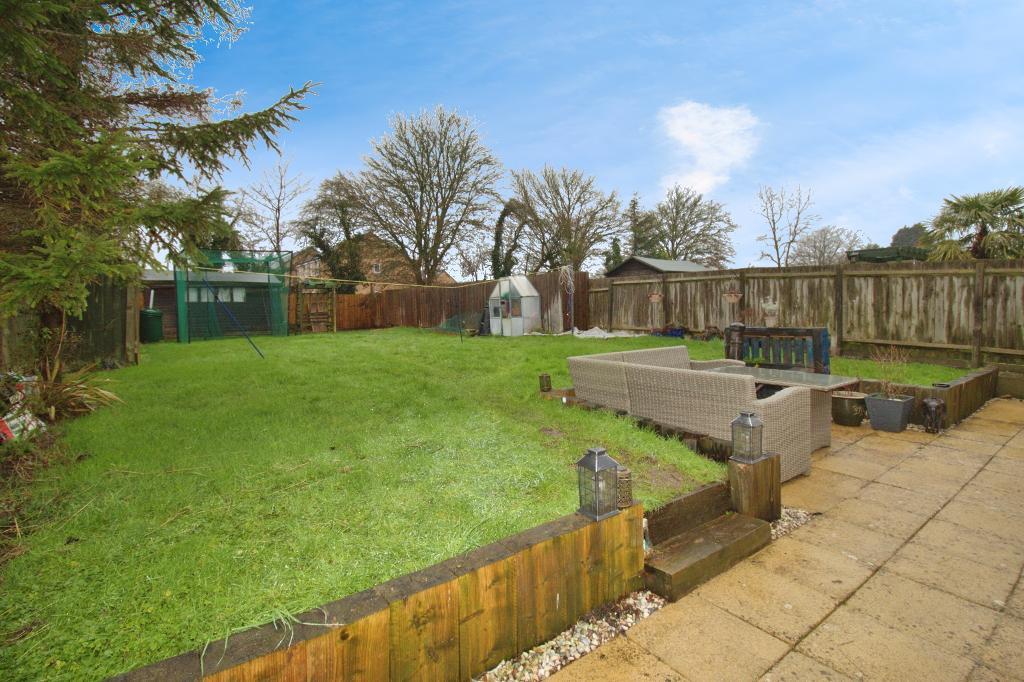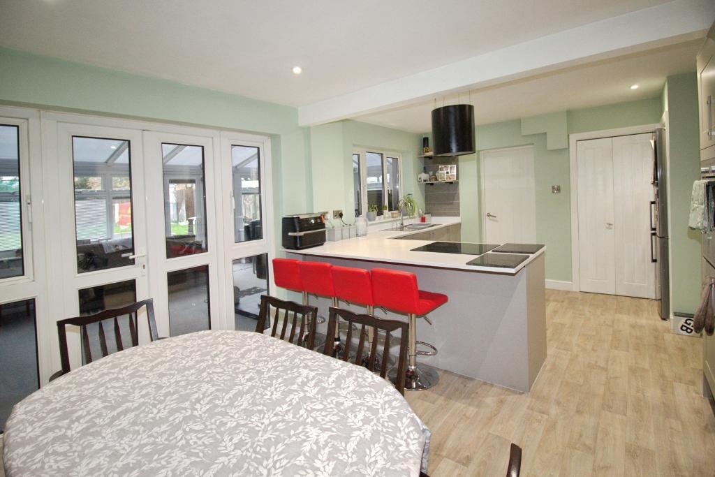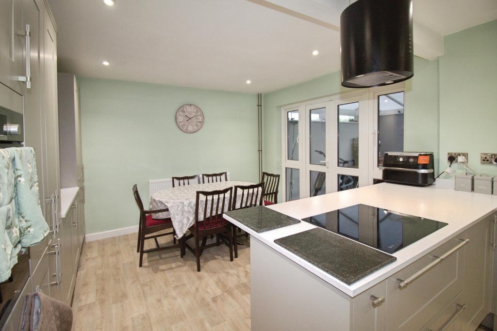 The stunning open-plan kitchen fitted less than three years ago delivers on both aesthetics and practicality, featuring sleek island units, floor-to-ceiling storage, integrated pantries, an induction hob, oven, and built-in dishwasher. There's ample space for family dining and a dedicated breakfast area that bathes in natural light, with a pleasant flow into the adjoining day room. Everyday living is made easy thanks to a useful utility room and a convenient downstairs WC. The property is supported by a modern combination boiler and, with a substantially sized rear garden, holds future potential for extension (subject to planning).
